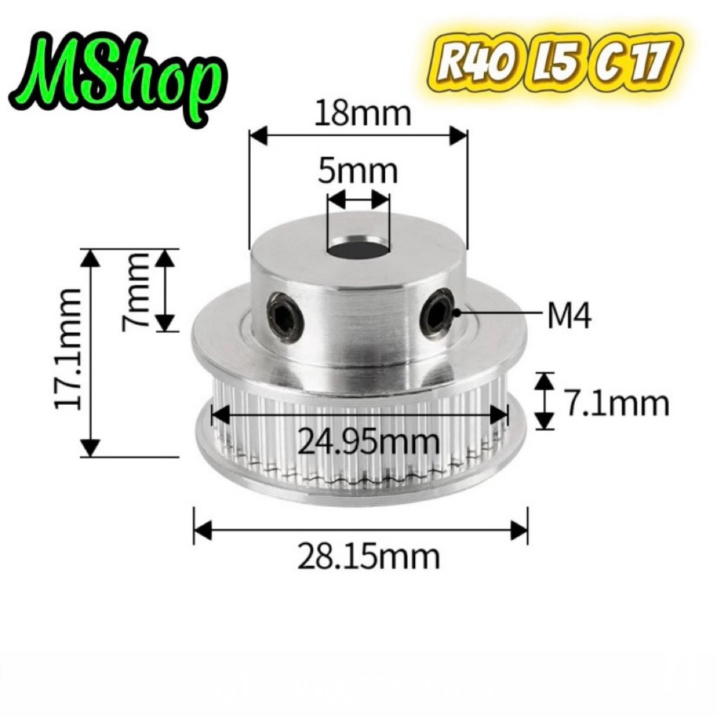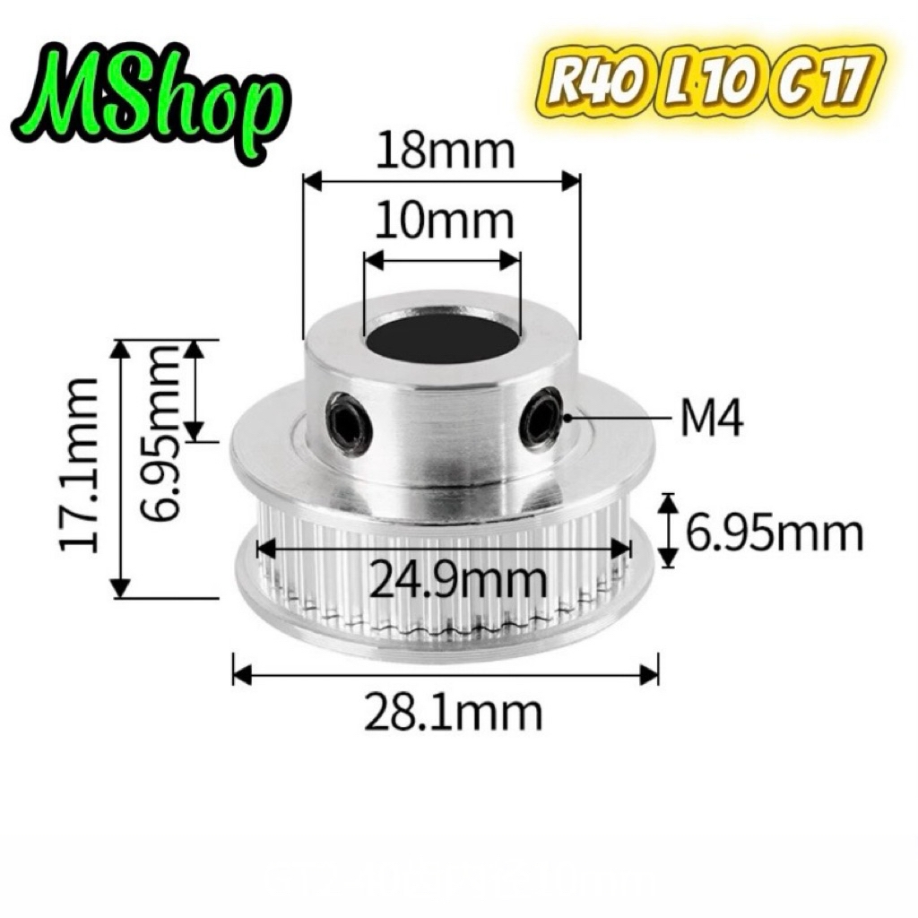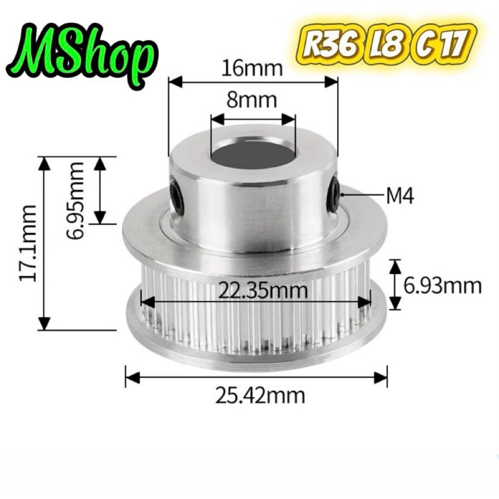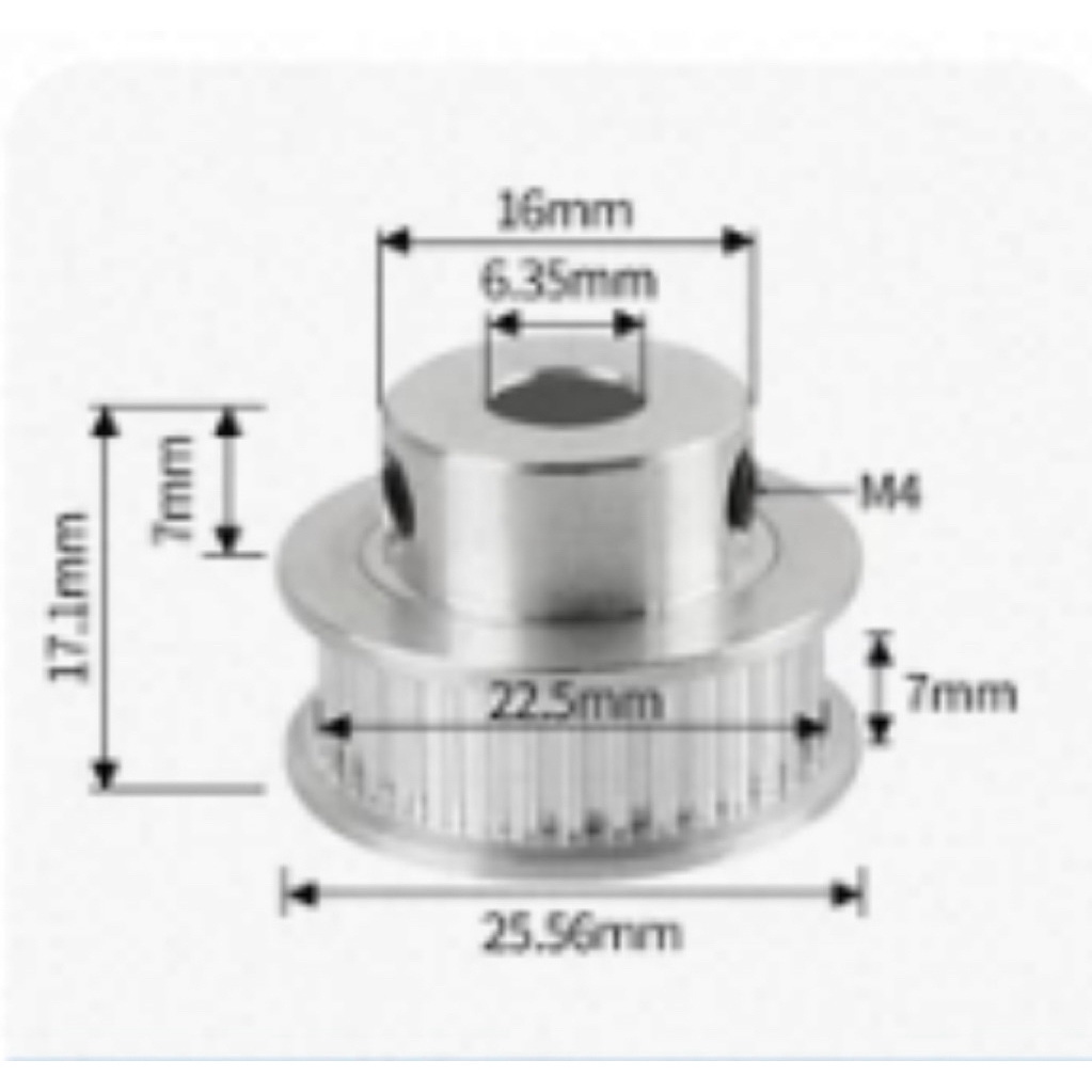 Pully - Bánh răng GT2 được làm bằng hợp kim nhôm có độ cứng cao, chống biến dạng và chống mài mòn cao. Dùng kết hợp với dây đai (dây curoa) GT2 và ròng rọc GT2 để tạo ra cơ cấu truyền động từ động cơ đến các bộ phận khác.